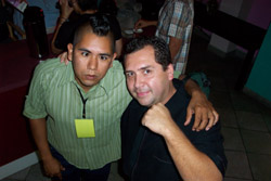 a recently mohawked julio with mr. luis alba, father of young kyle alba.